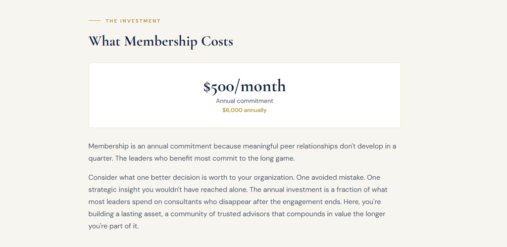 One decision improved. One mistake avoided. One insight you couldn't have reached alone. That's what the right room provides.