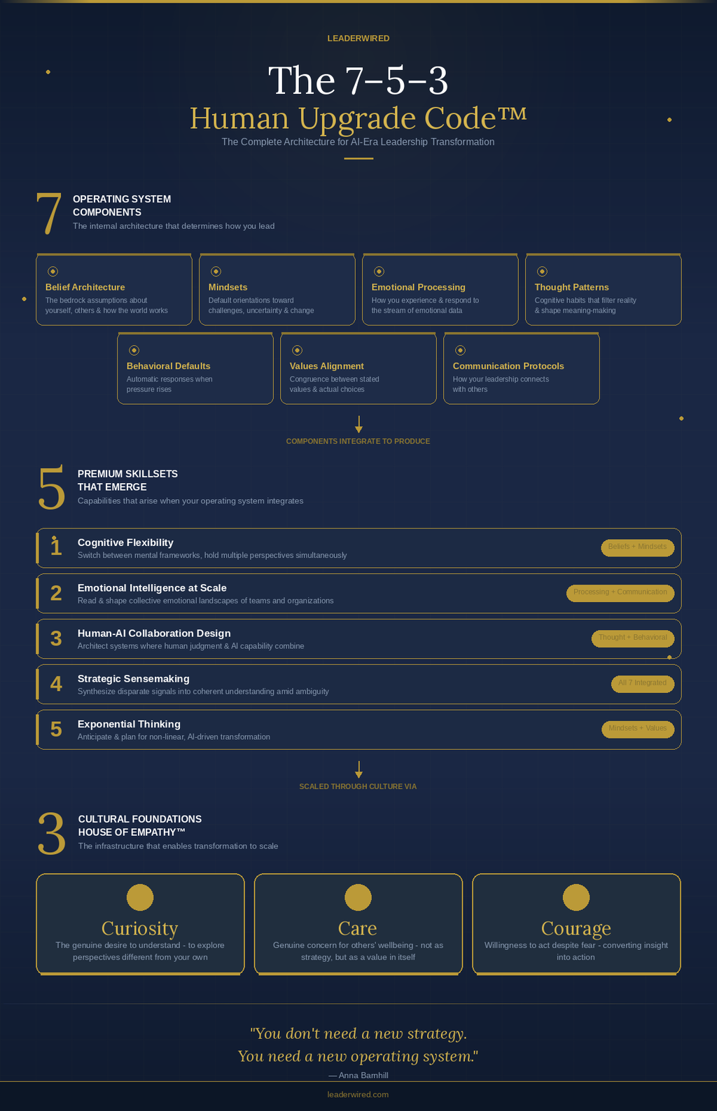 "The leaders I’ve watched transform - truly transform, not just adjust at the margins - share something in common. They made a decision that their development mattered. Not because it was comfortable, not because it was easy, but because becoming a better leader was integral to who they wanted to be. They did the work on beliefs when it would have been easier to keep the old ones. They upgraded mindsets when the familiar orientation seemed more efficient. They rewired thought patterns when the old ones were automatic. They modified behavioral defaults when the habits were ingrained. They clarified values when ambiguity was more convenient. They upgraded communication when the old approach was well-practiced. And they sustained these upgrades - not through heroic willpower but through intelligent design of the practices, relationships, and environments that supported their continued growth. You can do the same."