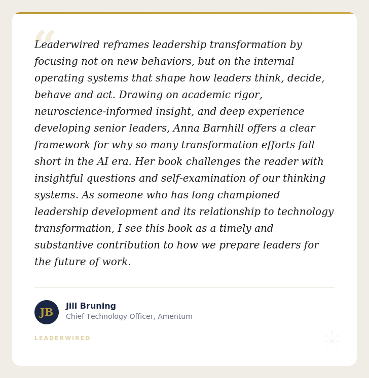 Grounded in applied neuroscience and forged through more than sixteen years of executive coaching, Leaderwired™ goes where most leadership development stops, beneath skills and strategies, into the internal operating system that determines whether leadership actually works.